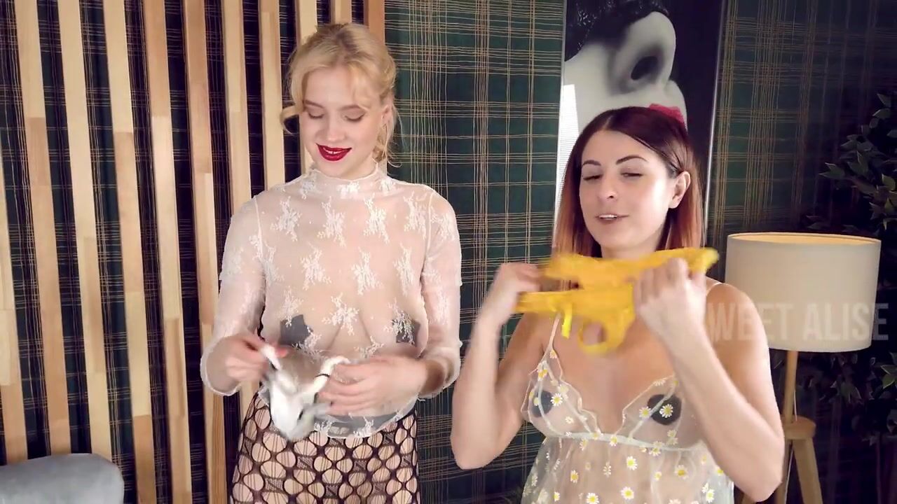 2 girls pantyhose try on review! see through Transparent lingerie try on review Sweet Alise thong
