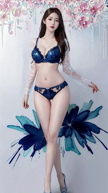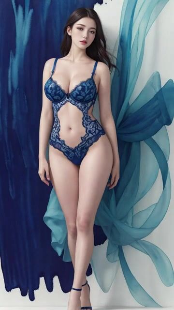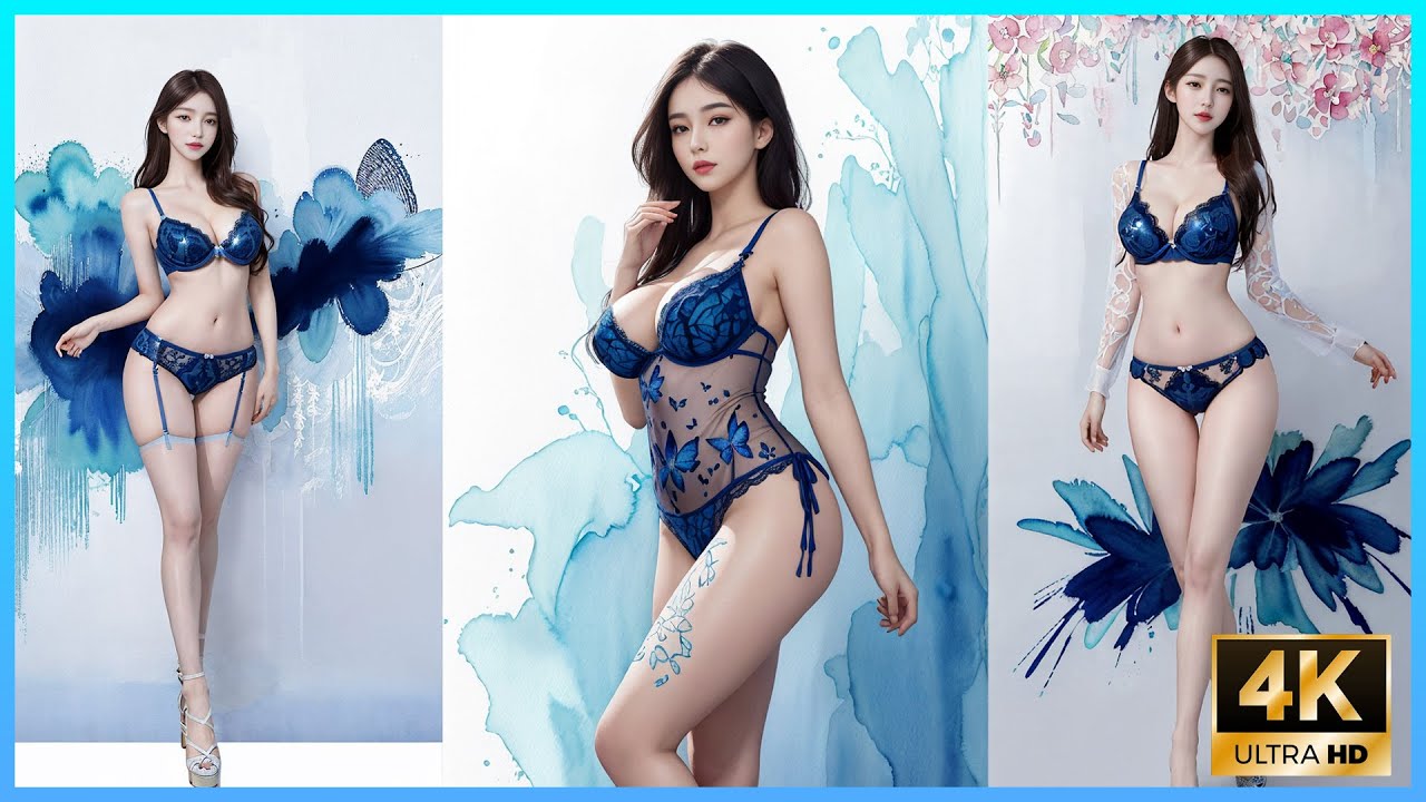 [4k AI girl] AI LOOKBOOK blue Underwear Watercolor art 블루 언더웨어 아트 수채화 アート 水彩ブルーランジェリー