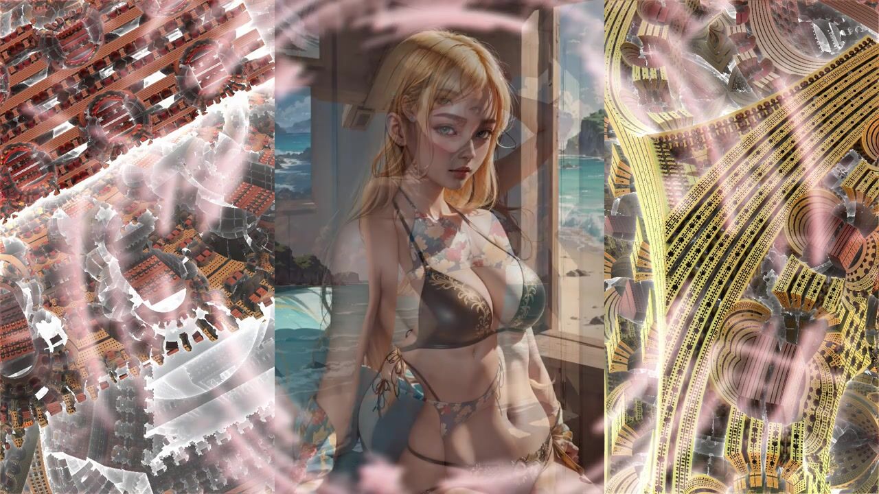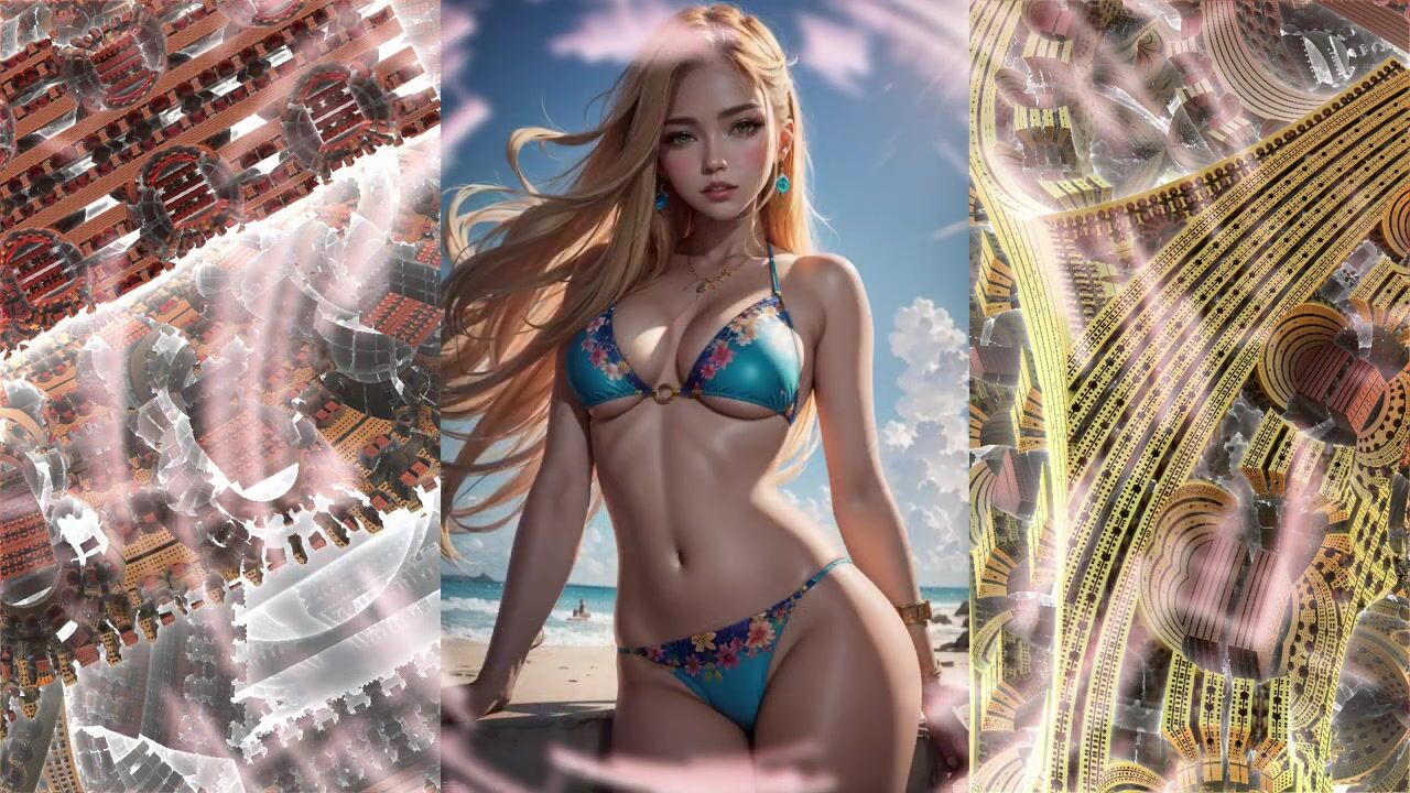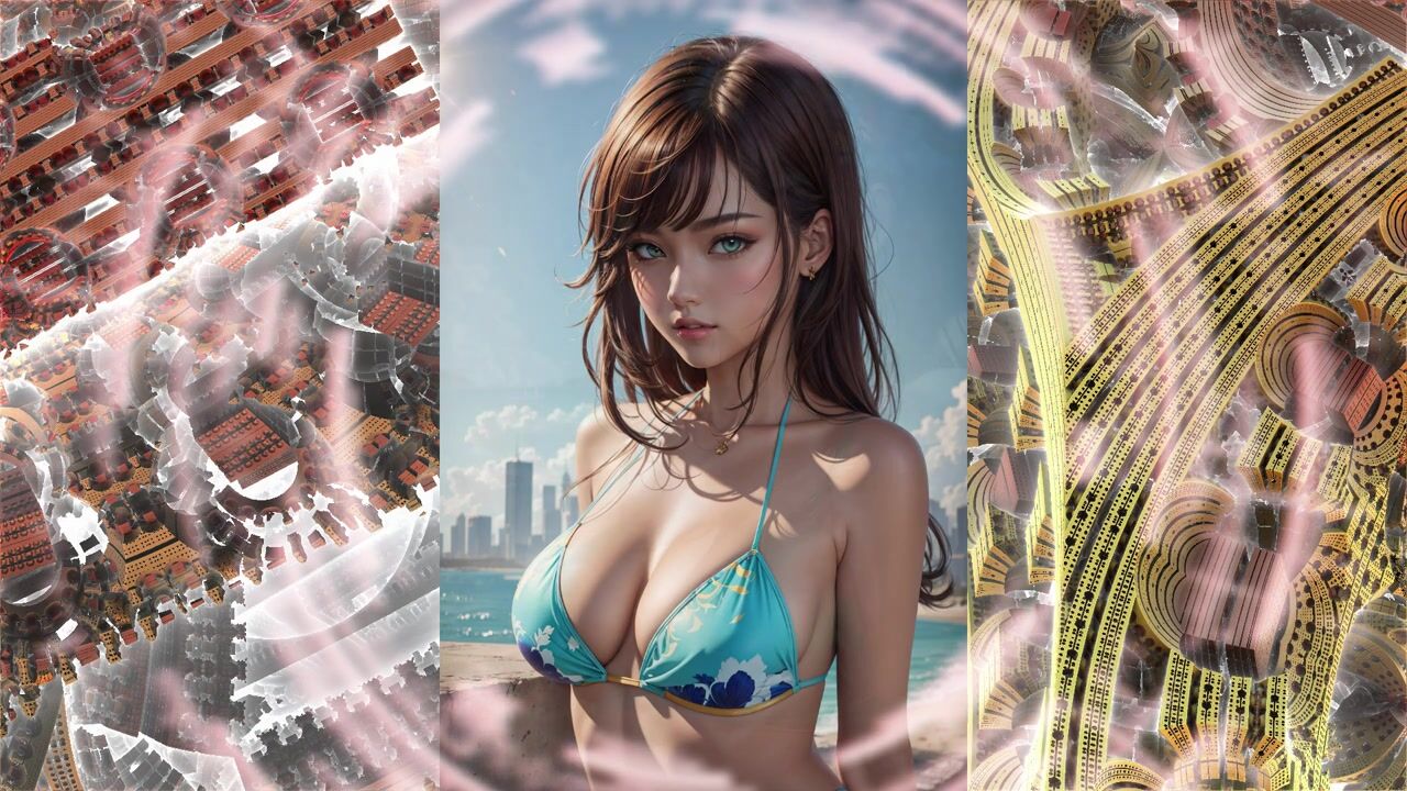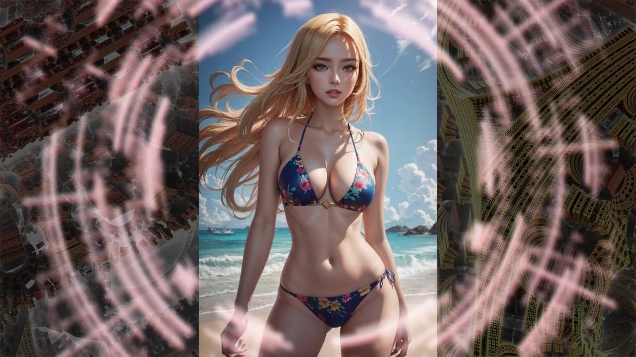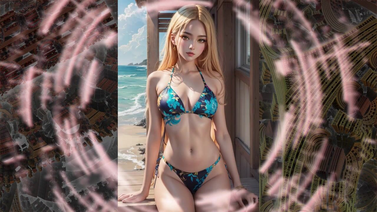 Beautiful anime girls in bikinis swimwear from the neural network AI