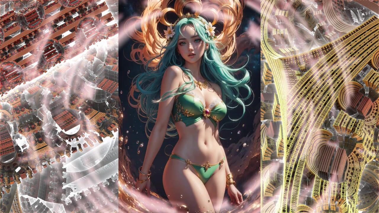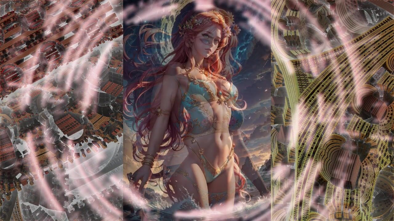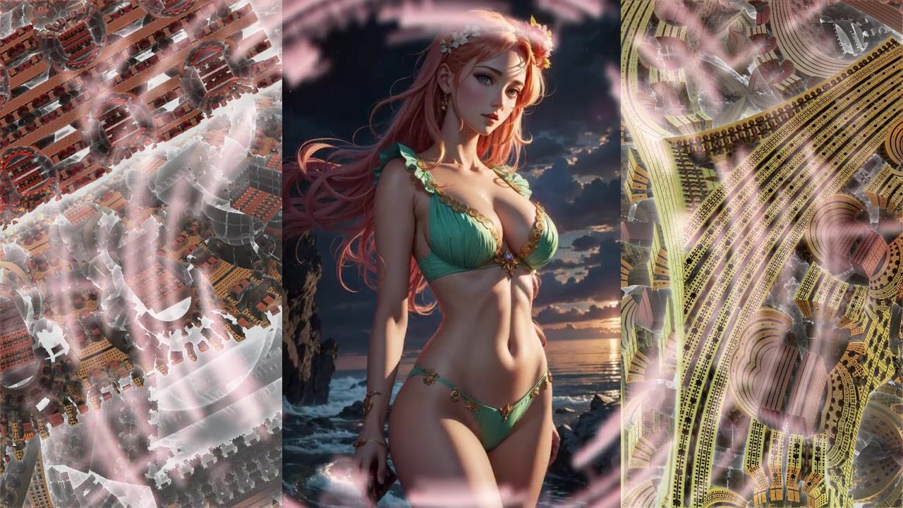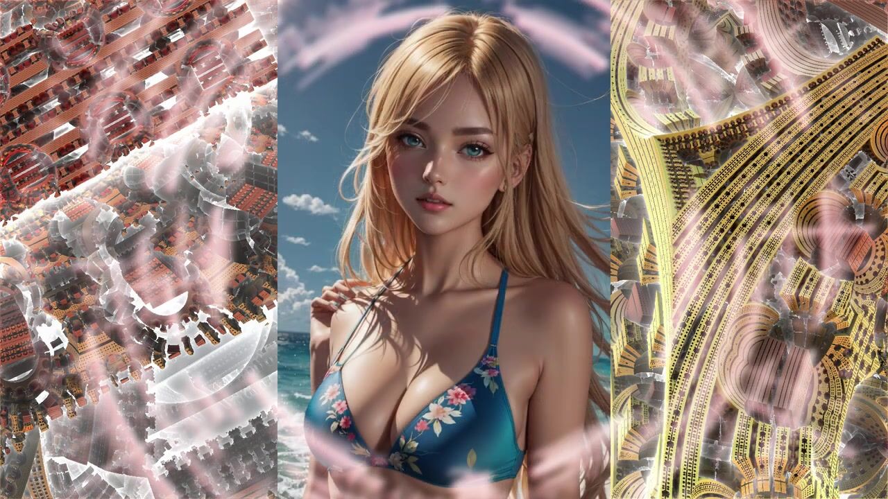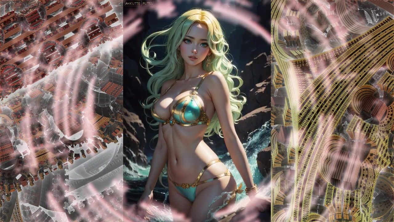 Beautiful anime girls in bikinis swimwear from the neural network AI