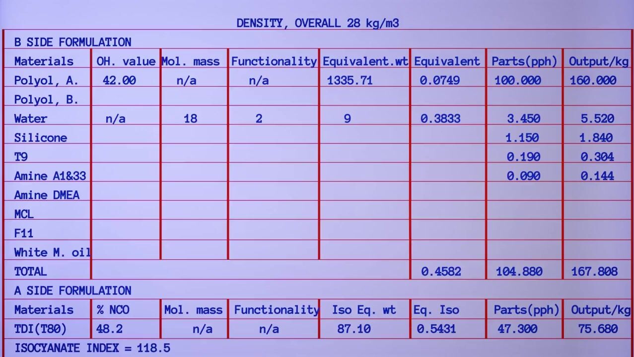 PU FLEXIBLE FOAM Formulation for 28 density overall