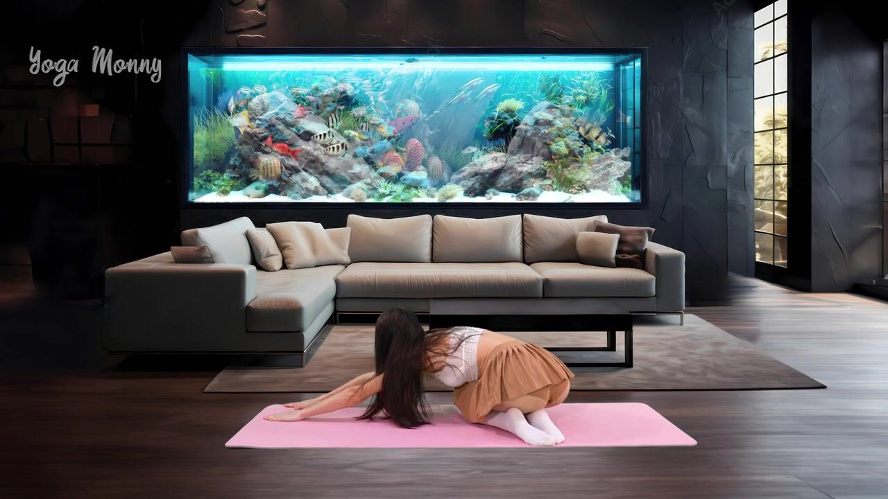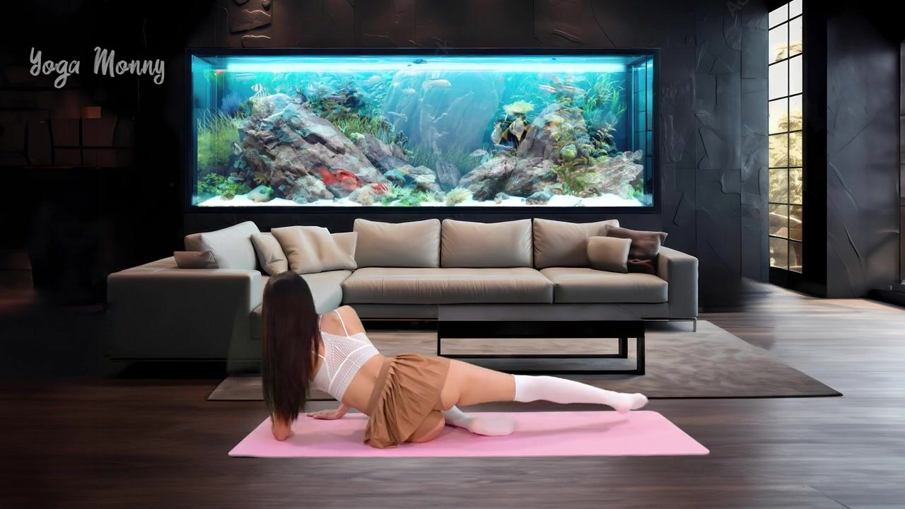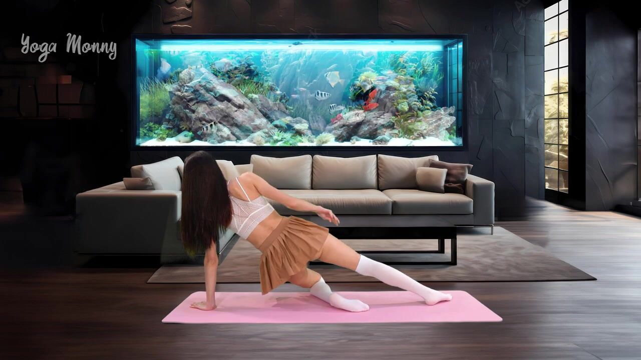 ????Yoga Stretch in Skirt Home Workout
