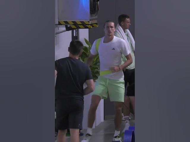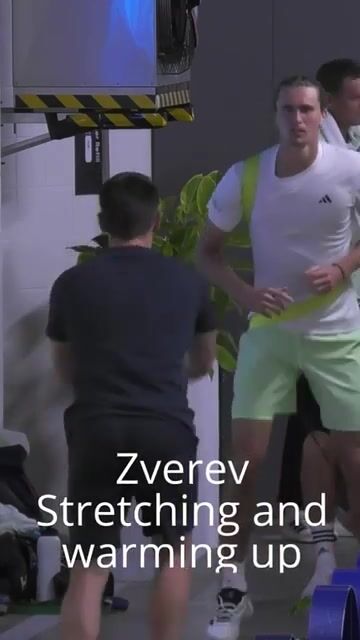 Zverev stretching and warming up in Australian Open. ???? AO 2024